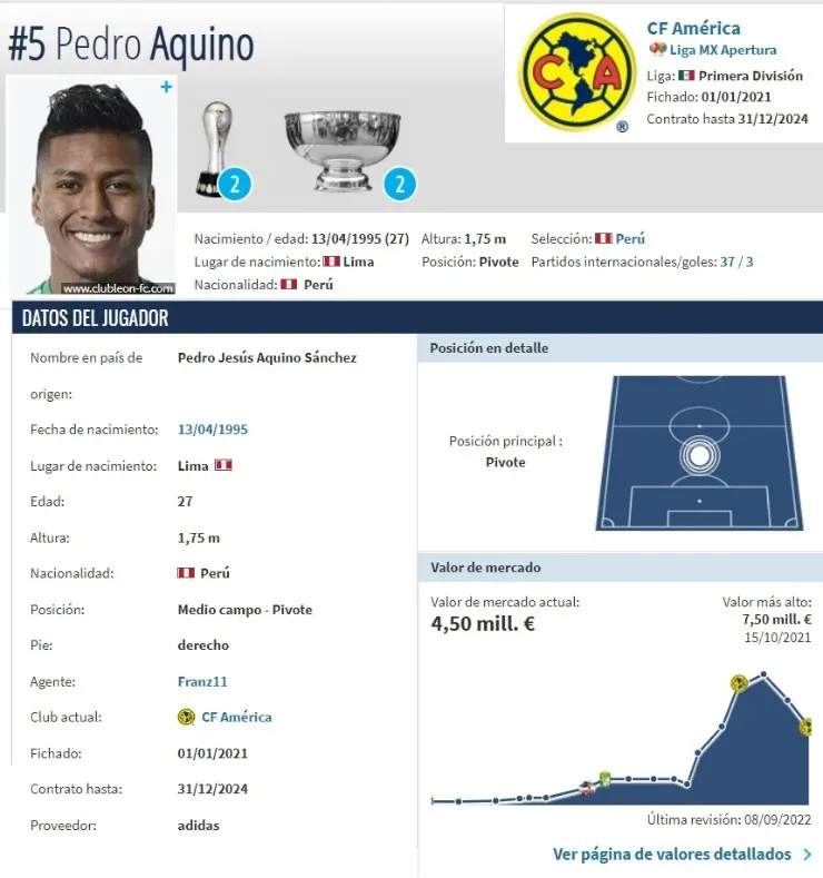 Cabe resaltar que en estos momentos, según el conocido portal Transfermarkt, el peruanotiene actualmente un valor de 4,5 millones de eurosen el mercado de pases. El precio pudo ser incluso mayor si Perú hubiera clasificado a Qatar 2022.