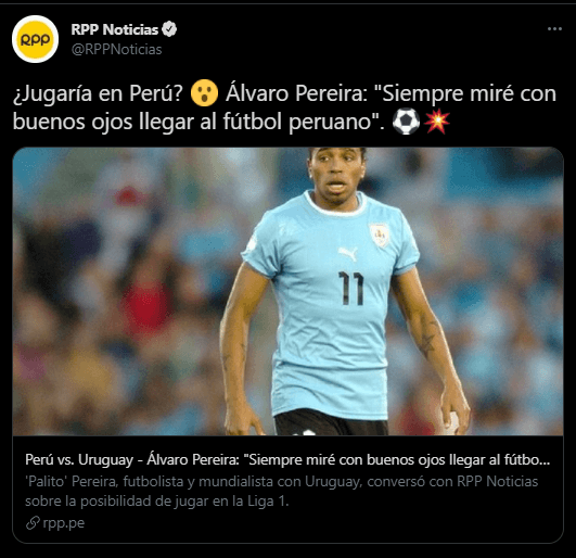 Dejando en claro al final, que no le desagrada la idea de venir a nuestro torneo a probar suerte: “No descartaría llegar al fútbol peruano, obviamente se tendrían que dar las condiciones. No me muero por jugar en el fútbol peruano, pero si hay acercamiento e interés, yo contento. Siempre miré con buenos ojos ese mercado”. Culminó el ex Porto.