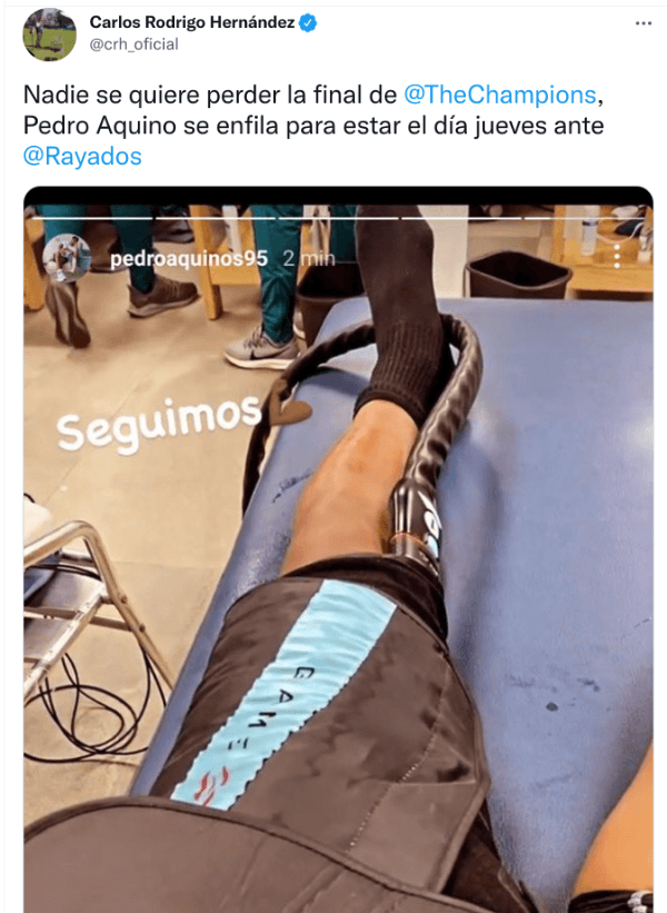 Franz Tamayo de Depor, felizmente, informó lo siguiente: “Pedro Aquino estará el jueves en la final de laConcachampions. Felizmente su lesión no fue de consideración”. Así, todo parece ser que no pasó de un susto. Lo esperamos en unos días ¡Vamos Roca!