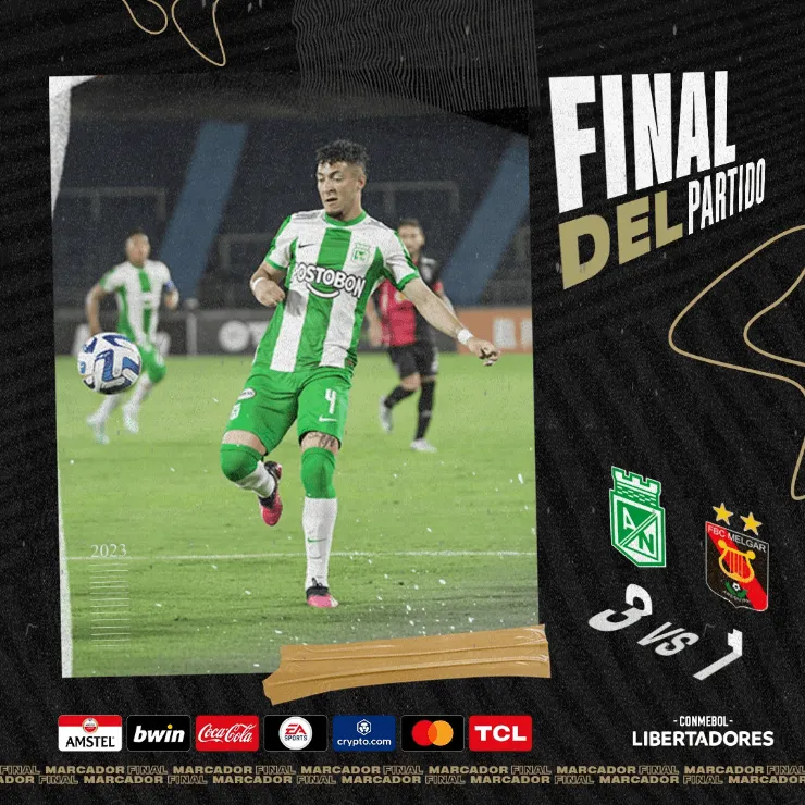 CONMEBOL, mediante un comunicado oficial, dio el decreto como confirmado: “La Dirección de Competiciones y Operación de la CONMEBOL informó sobre el cambio de escenario, en el partido Atlético Nacional (COL) vs. Melgar (PER), correspondiente a la Fase de Grupos de la CONMEBOL Libertadores 2023”.
