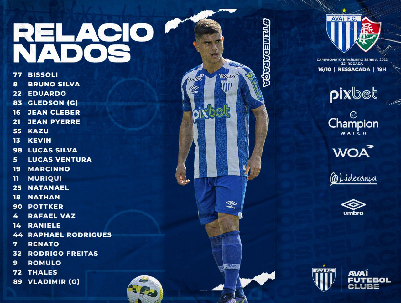 Sin poder contar con el apoyo de su afición -el STJD definió que el partido en Ressacada será a puerta cerrada, dato no menor. Avaí apuesta por su experimentado delantero, William Pottker, contra el rival de turno, Fluminense. Quien vuelve al once titular tras cumplir una suspensión en el último round. El mediocampista Raniele y el delantero Paolo Guerrero se encuentran casi descartados por el tema de lesión, aunque podrían ser sorpresas de última hora.