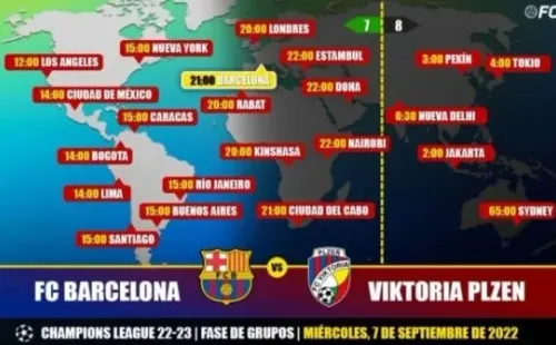 Barcelona vs Viktoria Plzen: horarios en el mundo