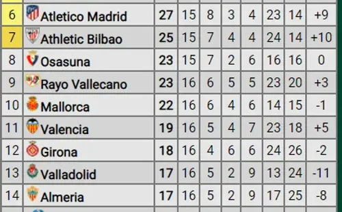 Con este resultado, deja más puntero al Barcelona con 41 puntos a tres del Real Madrid y el Atlético de Madrid por ahora se queda en quinto lugar con 27 unidades.