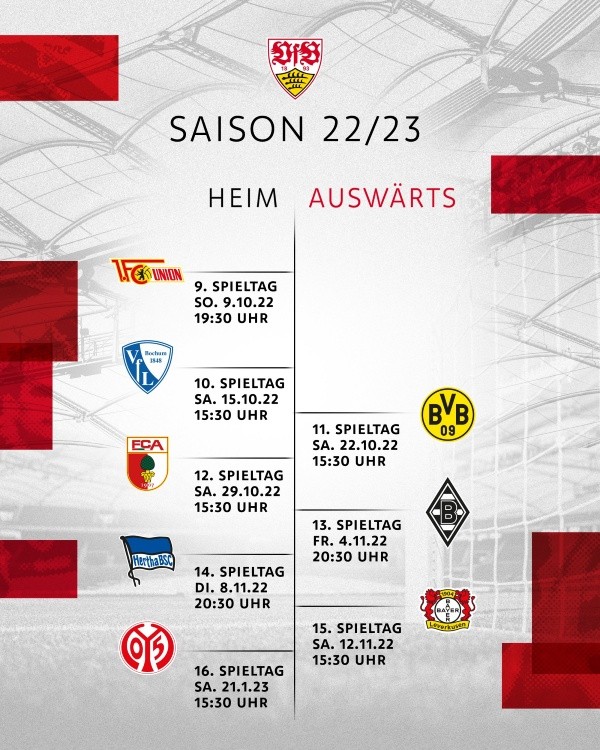 El Stuttgart, por su parte, empató por cuarta vez en cinco partidos de liga con un empate 1-1 en casa ante el Schalke 04 el pasado fin de semana. Las esperanzas de Stuttgart de obtener su primera victoria de liga de la temporada 2022-23 se vieron significativamente dañadas por la expulsión de Josha Vagnoman en el minuto 67 por una segunda infracción amonestable. Hallando, quizás, un contexto difícil para poder afrontar ahora contra Bayern.