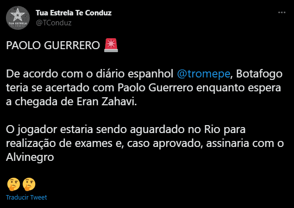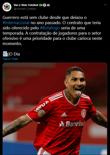 Desde Brasil nació un dato que replicó de manera inmediata ‘El Trome’ en todos sus medios de comunicación. Ahí podemos leer lo siguiente, en principio utilizan una fuente verídica. Porque se trata de un portal de internet con datos exclusivos sobre el Botafogo de Río de Janeiro.