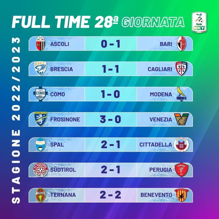 En la siguiente jornada de la Serie B, el Brescia deberá visitar al Venezia, el sábado 11 de marzo desde las (8:00 AM – HORA PERUANA). Mientras que, Cagliari debe recibir al Ascoli, el viernes 10 de marzo, desde las (2:30 PM – HORA PERUANA). El equipo de Gianluca Lapadula está obligado a sumar unidades.