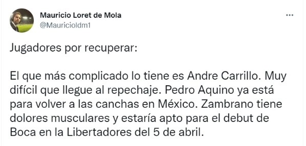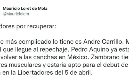 Cabe recordar que Pedro Aquino se lesionó con la Selección Peruana previo a los partidos contra Colombia y Ecuador, el volante fue desafectado de la ‘Bicolor’ perdiéndose ambos encuentros, lo que le hizo viajar, de manera inmediata, a México para que su club pueda ver la gravedad de lo sucedido y poder recuperarlo lo más pronto posible.
