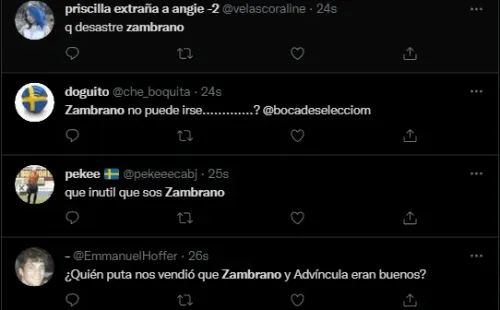 Carlos Zambrano arrancó como titular en Boca Juniors junto a Luis Advíncula, en el duelo frente a Argentinos Juniors. Sin embargo, su rendimiento durante el partido no ha sido el mejor, y los hinchas del cuadro ‘xeneize’ ya no le tienen paciencia. En redes sociales lo acaban de hacer tendencia a base de críticas duras.