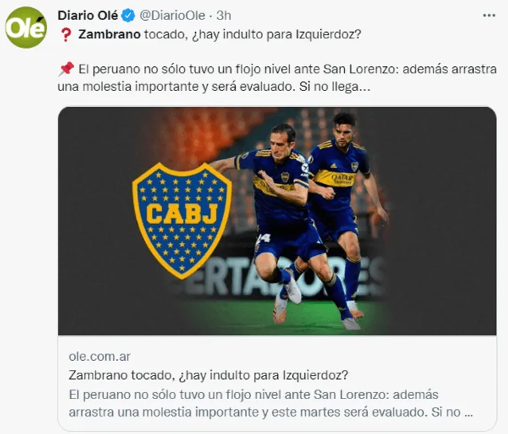 Si bien es cierto, aún no se saben los resultados de la prueba, en Argentina se preguntan siCarlos Zambranodebería ser titular en caso sus pruebas salgan bien. Su mal rendimiento en el último partido ante San Lorenzo, harían que espere su oportunidad desde el banquillo ‘Xeneize’.