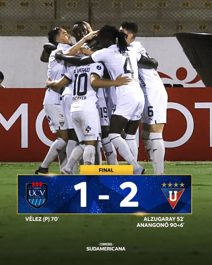 Posteriormente, Jairo Vélez vía penal igualó el compromiso al minuto 70. Asimismo, cuando parecía que el cotejo iba a concluir igualado, sobre el final LDU lo ganaría con la anotación de Juan Anangonó.