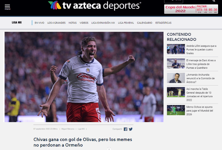 En principio esa fue la presentación del artículo donde se cuenta el triunfo de las Chivas vs. Xolos de Tijuana, para después, revisar una serie de ‘tuits’ contra el hijo de Don Walter Ormeño, histórico en el universo fútbol de Perú y México: “Santiago Ormeño fue titular por primera vez con el Rebaño, pero fue duramente golpeado por los memes tras jugar 68 minutos y ceder su lugar a Ángel Zaldívar”.