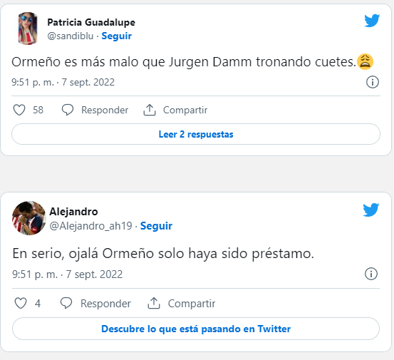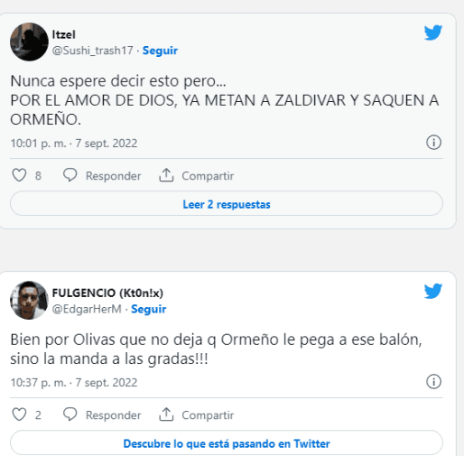 Acá podemos ver algunos de los comentarios contra Santiago Ormeño, quien tuvo la chance de ser titular en este cotejo contra los ‘Xolos’, última fecha de la Liga MX. Podemos decir que no jugó mal y se ganó los minutos iniciales de este cotejo, pero finalmente, el fanático muchas veces es soberano y no tiene mayores contrarios. Ojalá mejore la relación entre ‘Ormedeus’ y su entorno más cercano.