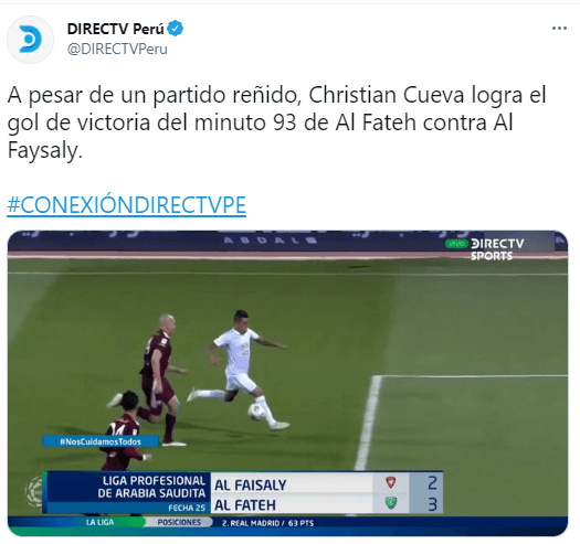 El entrenador principal de ‘Al-Fateh’; Yannick Ferrera, conversó con ‘El Comercio’ y destacó de sobremanera al futbolista peruano: “Ha marcado goles importantes, dio asistencias importantes y desde que llegó el equipo juega muy bien”. Todo esto tras los últimos cotejos con Christian Cueva mostró que es un jugador interesante de ver y disfrutar.