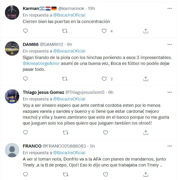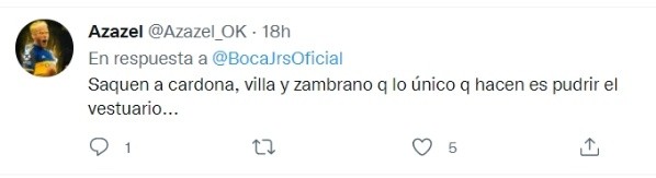 Los hinchas comentaron en el Twitter del club donde es totalmente claro que no quieren a estos tres futbolistas tras los actos realizados. Entre las reacciones de los fanáticos se puede ver que publicaron: “Cierren bien las puertas de la concentración”, “Quieren sacar a los 3 chiflados de una vez??”, “Saquen a Cardona, Villa y Zambrano que lo único que hacen es pudrir el vestuario…”, fue lo que reflejaron los aficionados.