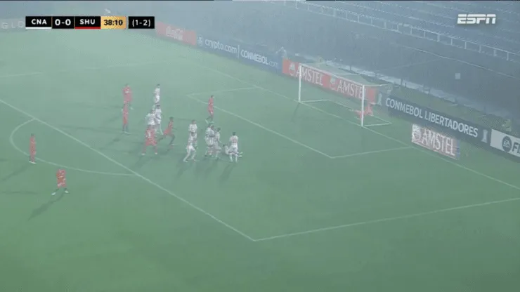 Es que a los 38′ minutos, el árbitro sancionó una falta de Baéz-que fue amonestado por esta acción-y el mismo que la recibió ese fuerte disparó.
