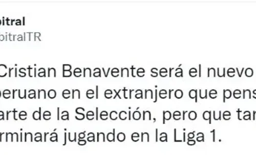 Esta información la brindó ‘Depor’ quienes hablaron con el periodista egipcio Ahmad Gamal Ali, quien afirmó, que el club Pyramids no tiene en sus planes al volante peruano. “Lo que se sabe es que Pyramids está buscando un acuerdo de transferencia para Benavente, ya que no forma parte del equipo del club en este momento”, sostuvo el reportero del medio KingFut.
