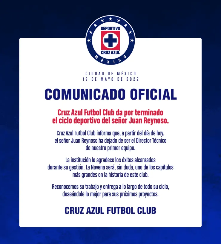 Además, no se olvidan del título de la Liga MX que Juan Reynoso le dio al club en su primer año en el banquillo. “La institución le agradece los éxitos alcanzados durante su gestión. La ‘Novena’ será, sin duda, uno de los capítulos más grandes de la historia de este club. Reconocemos su trabajo y entrega a lo largo de todo su ciclo deseándole lo mejor para sus próximos proyectos”.
