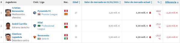 El mediocampista ofensivo del Pyramids FC de Egipto tuvo un año para el olvido. Quizás, el peor de toda su carrera (27 años). Porque cayó su valor en el mercado con un saldo negativo de 68,8%. Perdiendo un total de 2,20 millones de euros. Llegando a costar en este momento un aproximado al millón de euros según ‘Transfermarkt’.