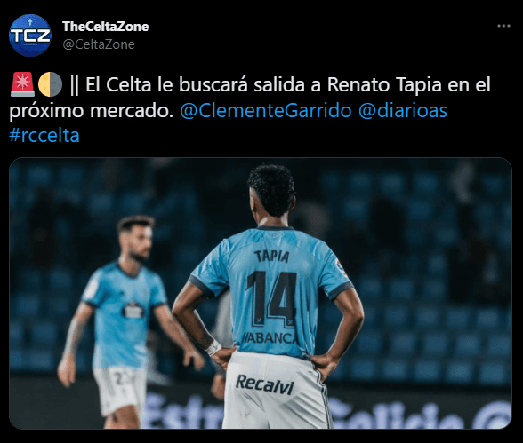 Detallando también que el ex Feyenoord al día de hoy es un producto vendible, más aún con épocas de Selecciones Nacionales, donde él es altamente requerido por Ricardo Gareca: “El valor actual de Tapia es de 15 millones de euros. La idea del conjunto vigués es traspasarlo este verano, aprovechando que el peruano todavía tiene buen cartel”. Son semanas claves para el nuevo referente ‘blanquirrojo’.