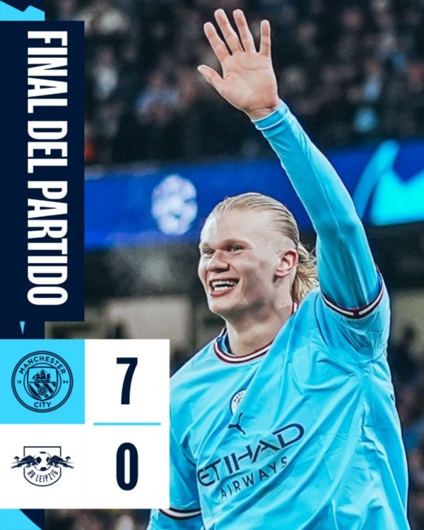 Además, Erling Haaland es el tercer jugador en toda la historia de la Champions League en marcar 5 goles en un partido, tras Lionel Messi y el brasileño Luiz Adriano. El mejor jugador de este partido por escándalo. Manchester City le ganó 7-0 al RB Leipzig, en otras noticias.