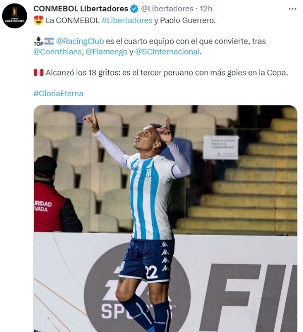 Pero más auspicioso que los tres puntos obtenidos de visitante ante Ñublense, fue el interesante dato que salió a la luz. Partiendo de las coincidencias en el fútbol, una información reveló que Paolo Guerrero sería el próximo campeón de la Copa Libertadores con Racing Club.