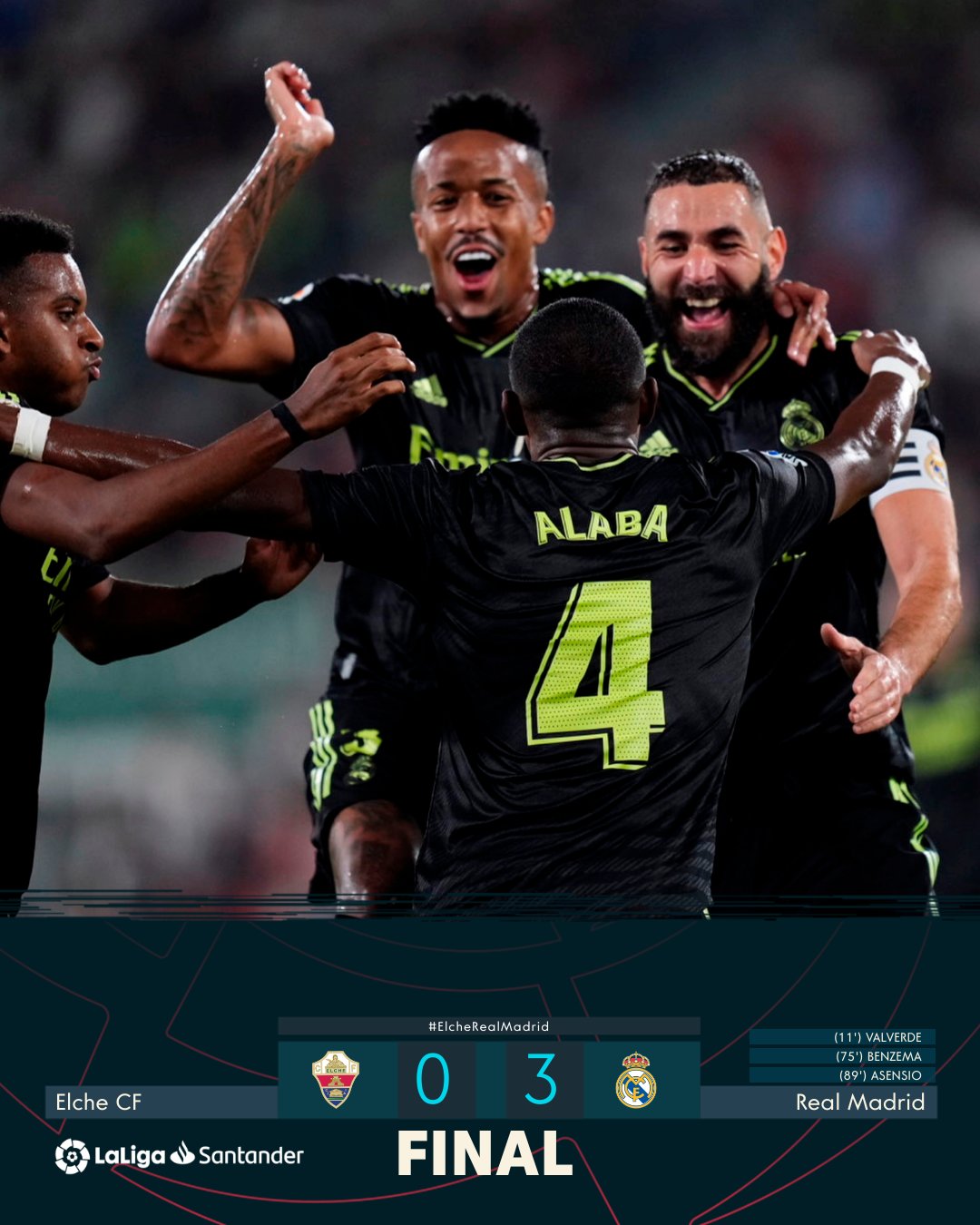 Los dirigidos por Carletto Ancelotti hallaron en minutos oportunos los goles respectivos. Los que se llevaron la estadística del grito sagrado fueron: Federico Valverde, Karim Benzema y Marco Asensio. ‘El Gato’ celebró en este duelo su ‘Balón de Oro’ con algunos goles invalidados por el VAR. El centro delantero francés, fuera de eso, hizo un gran partido.