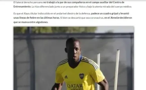 Brindando más detalles de por qué Luis Advíncula no se entrenó con Boca Juniors, el portal web argentino reveló la razón por la que el lateral derecho peruano trabajó de manera diferenciada y aislada.