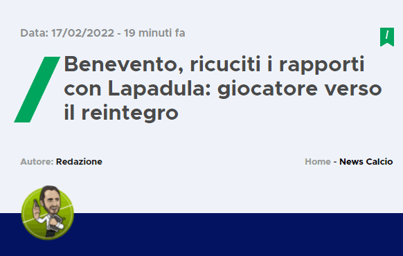 El titular del informe dice lo siguiente: “Benevento, se recomponen las relaciones con Lapadula: jugador hacia la reinserción”. Dando por iniciado el proceso a informar con una serie de datos considerables, con respecto al presente del ex AC Milan. Quien se encuentra ahora mismo lejos del plantel principal tras una disputa legal presente.