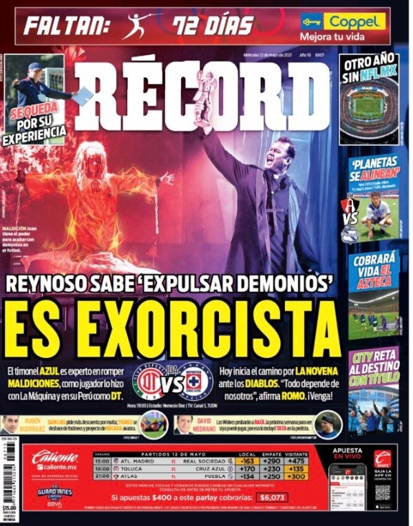 Nada menos que Record escribió: “Reynoso sabe expulsar los demonios”. “Es exorcista”, complementan después. “Es experto en romper maldiciones“, se lee luego.