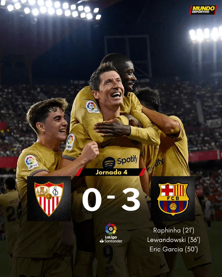 Robert Lewandowski fue el protagonista absoluto en la goleada del FC Barcelona contra un Sevilla que, si bien intentó vencer al cuadro catalán, sucumbió ante la presión y falló jugadas clave frente al guardameta culé.El marcador final fue 3-0 favor del Barza. El polaco tuvo una participación destacada con un tanto en el partido y colaboración directa en los tantos de la escuadra de Xavi.