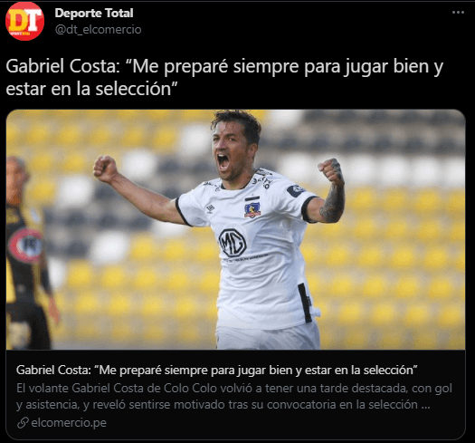 Estuvo haciendo todo lo posible para forjarlo, hasta que se le presentó la oportunidad. Gabriel Costa tiene un sin fin de goles y asistencias en el fútbol chileno, defendiendo la camiseta de Colo Colo. Por ese motivo, volver a la Selección Peruana era casi una obligación por su rendimiento constante.