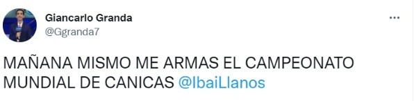 Tras este torneo, que narró Ibai Llanos junto a Ander y Gerard Piqué, quienes organizaron el certamen, el periodista Giancarlo Granda publicó en su Twitter lo siguiente: “Mañana mismo me armas el campeonato mundial de canicas Ibai Llanos”, publicó en su red social el narrador deportivo de Gol Perú.