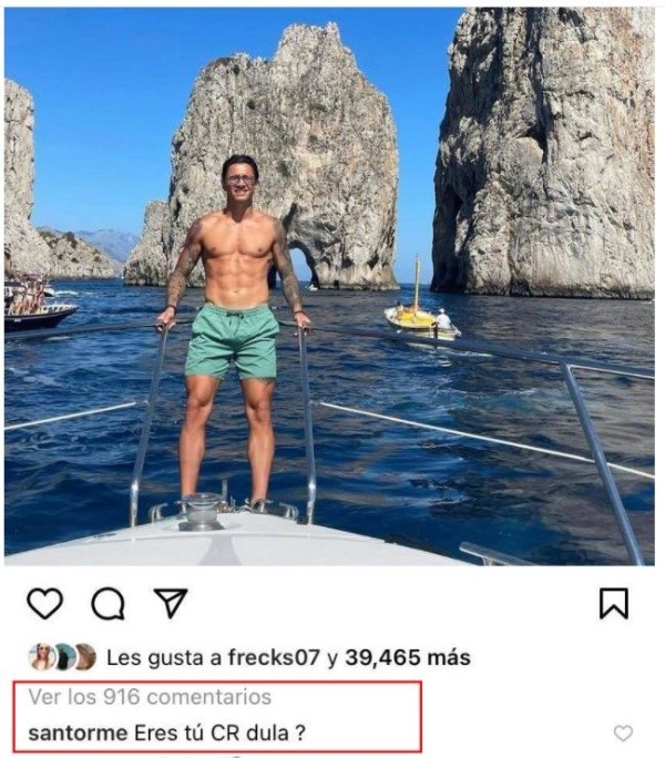 El atacante publicó una foto en sus redes sociales, donde se le muestra en una playa enseñado el torso, y deja ver que se encuentra en un buen estado físico para afrontar lo que se le venga. Esta publicación no pasó por alto para Santiago Ormeño, jugador del León de México, quien comentó en la imagen poniendo “¿Eres tú CR dula?”, en tono de broma.