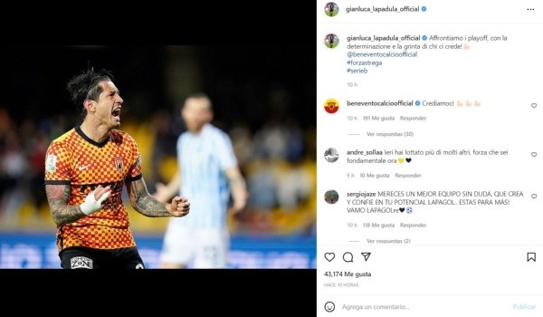 Gianluca Lapadula dejó un mensaje en sus redes sociales de cara a lo que serán los partidos de los playoffs: “Afrontemos los playoffs, con la determinación y determinación de quien cree en ello”, de esta manera el atacante del Benevento se expresó sobre el momento que vive su equipo, donde esperan poder ascender, nuevamente, a la Serie A para la siguiente temporada.