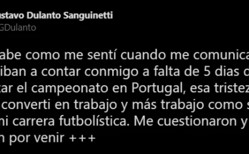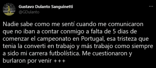 “Nadie sabe cómo me sentí cuando me comunicaron que no iban a contar conmigo a falta de 5 días de comenzar el campeonato en Portugal, esa tristeza que tenía la convertí en trabajo y más trabajo como siempre ha sido mi carrera futbolística. Me cuestionaron y burlaron por venir”.