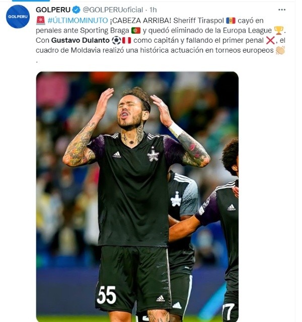 Peor que perder una llave de 16avos de Europa League, es caer sintiendo la responsabilidad de la carga por un penal errado. Siendo derrotadospor 2-0 ante Sporting Braga en Portugal, Sheriff Tiraspol, que había conseguido un triunfo por el mismo resultado en la ida, tuvo que ir al alargue y posterior tanda de penales para definir al ganar del cotejo. En ese escenario estaba Gustavo Dulanto, capitán del cuadro de Moldavia.