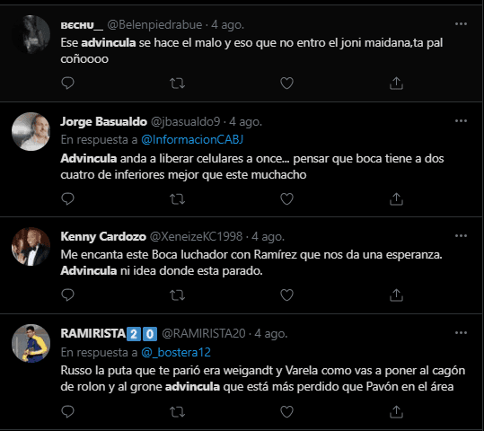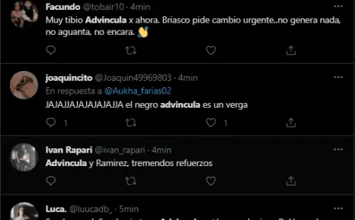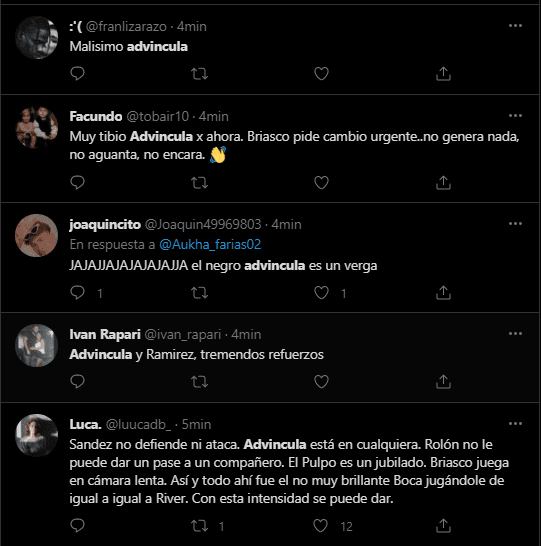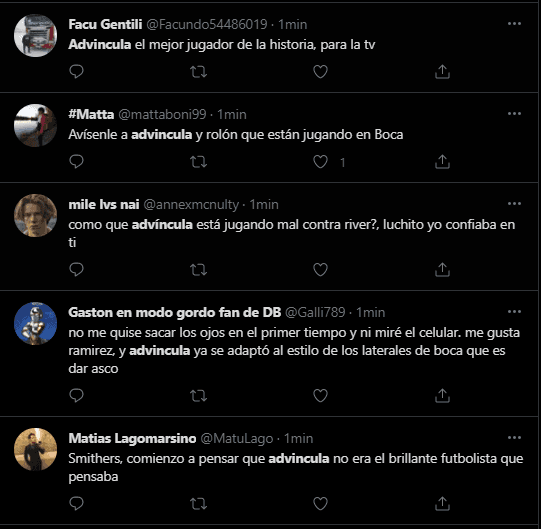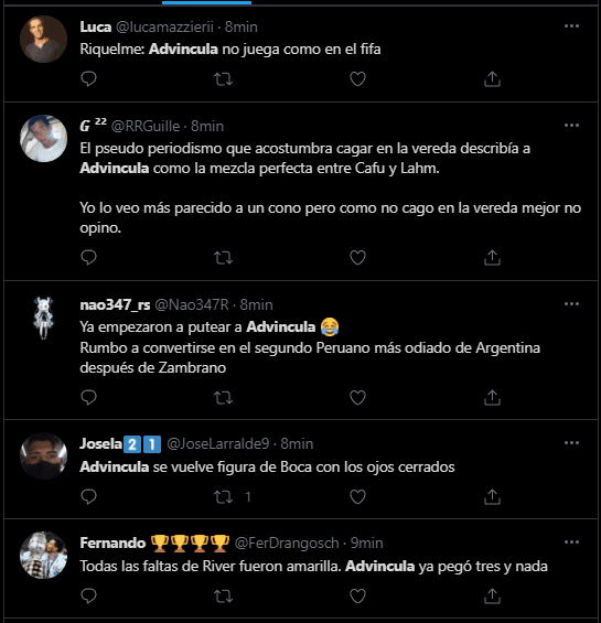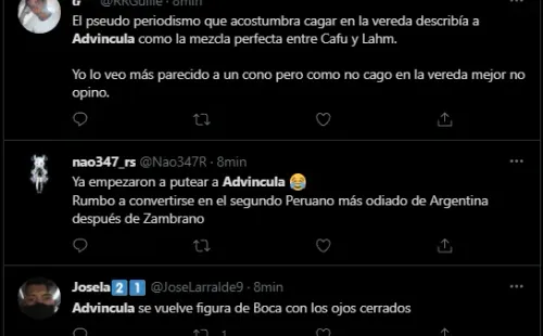 Porque los seguidores de Boca Juniors en Twitter, utilizaron a Luis Advíncula como punto fijo de crítica. Convirtiéndolo rápidamente en tendencia dentro de la popular red social. Donde criticaron su nivel, pidiendo que prácticamente se vaya del club, o que sea cambiado de forma inmediata por el suplente en esa banda derecha.