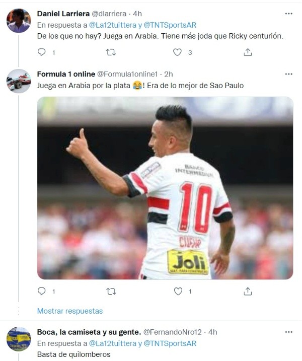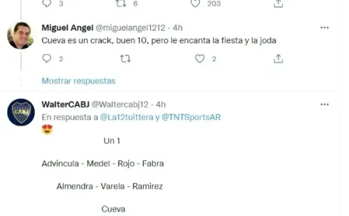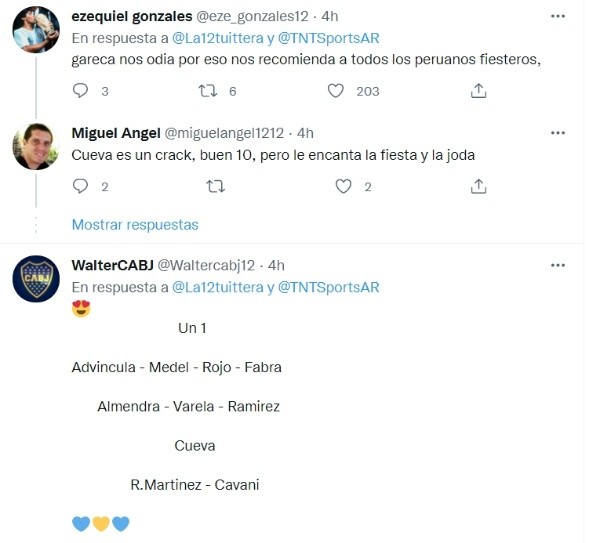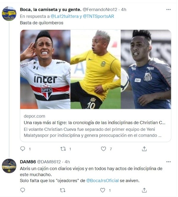 De llegar Christian Cueva a la azul y oro, sería en reemplazo de Edwin Cardona, ya que está por vencerse el préstamo del colombiano en Boca Juniors. Tras un tuit de La 12 Tuittera, donde citan las palabras de Ricardo Gareca quien dijo que prefiere ver jugar al volante peruano en el conjunto argentino, los hinchas reaccionaron con comentarios.