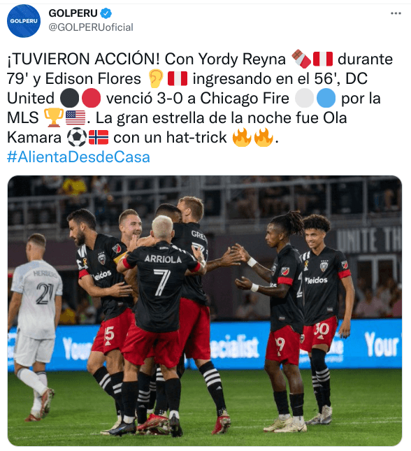 Este miércoles, por ejemplo, jugó un equipo que tiene dos peruanos: el DC United. El conjunto de Washington ganó 3-0 con hattrick de su delantero Ola Kamara contra el Chicago Fire. En este partido, Yordy Reyna y Edison Flores sumaron minutos.
