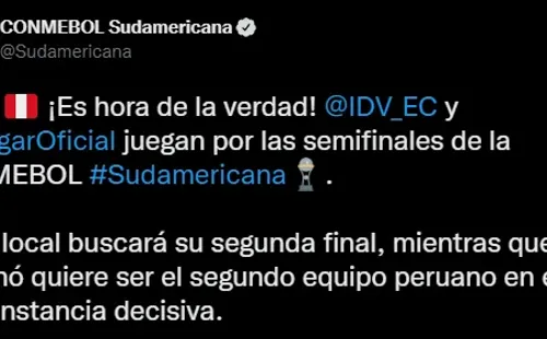 El equipo del entrenador argentino, Pablo Lavallén, está listo para competir esta noche desde las (7:30 PM – HORA PERUANA) en el ‘Estadio Rodrigo Paz Delgado’ de Ecuador. Y en horas previas, la propia competencia, conocida mundialmente como CONMEBOL Sudamericana, le dedicó unas palabras a este importante partido mediante sus redes sociales. El cual es denominado como un paso para la gran final.