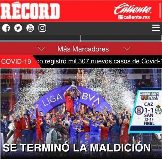 Desde el famoso ‘Diario Récord’, hasta ‘Medio tiempo’, pasando por otros medios deportivos, todos sin excepción, tienen en su portada como tamaño gigante, la medalla de Cruz Azul con Juan Reynoso como líder de la manada. Cuando antes criticaban y despotricaban despiadadamente, hoy lo señalan como artífice. En fin, la hipotenusa.