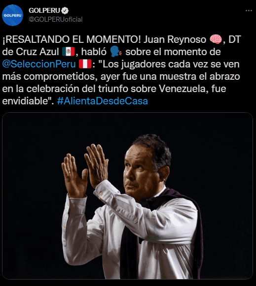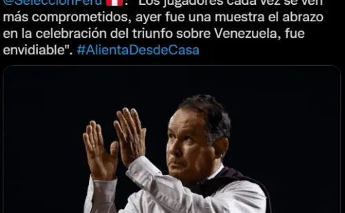 “La Selección Peruana hoy está en zona de repechaje. El equipo se volvió a meter a la pelea. Los jugadores cada vez se ven más comprometidos, ayer fue una muestra el abrazo en la celebración del triunfo sobre Venezuela, fue envidiable”. Para después explicar la actualidad sobre su equipo, donde no marchan bien en líneas generales.