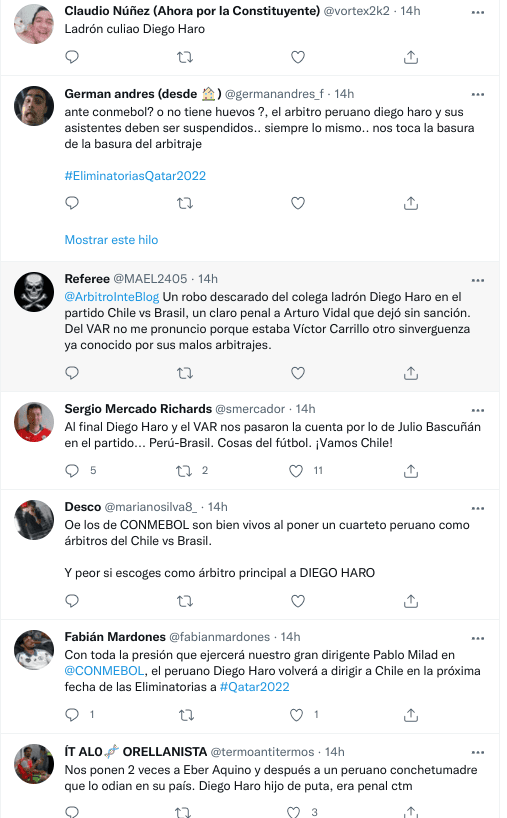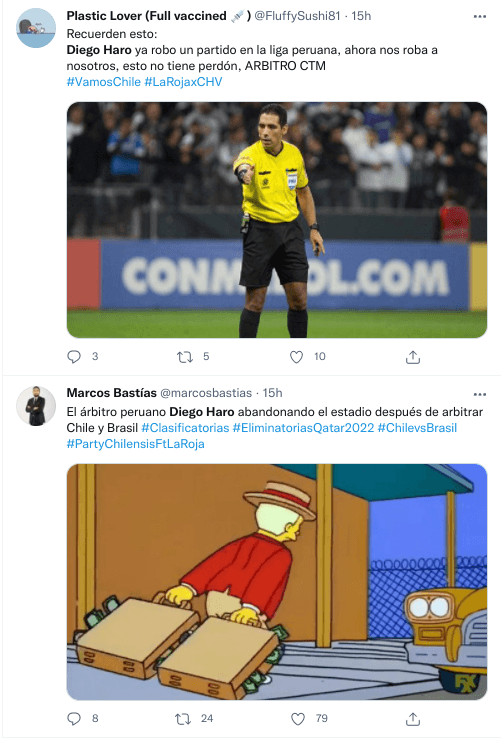 Los hinchas también hicieron lo suyo. En las redes sociales, el nombre del árbitro peruano fue muy utilizado por los chilenos. Algunos hasta consideraron que era una especie de venganza. Acá les dejamos algunos de los comentarios.