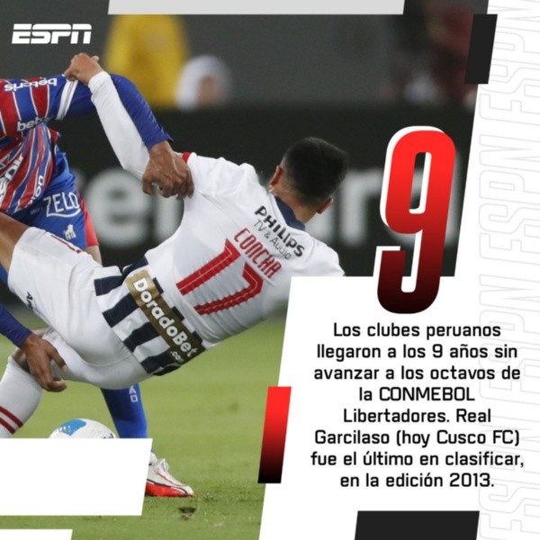Tras estos fatales números, se ha podido deducir una cifra de terror para los equipos peruanos en la Copa Libertadores. Y es que después de los sucedido con Sporting Cristal y Alianza Lima en el certamen internacional, se suman 9 años en que un representante nacional no llega a los octavos de final en el torneo continental, cantidad que alarma a muchos.