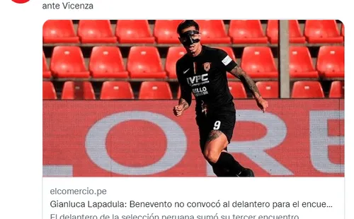 Gianluca Lapadula no fue considerado en la convocatoria del Benevento para duelo frenteal Vicenza, encuentro correspondiente por la fecha 34 de la Serie B. Con esta nueva ausencia, elseleccionado nacional yasuma su tercer encuentro sin ser considerado, anteriormentetampoco fue tomado en cuenta para los enfrentamientos ante elReggina y Pisa.