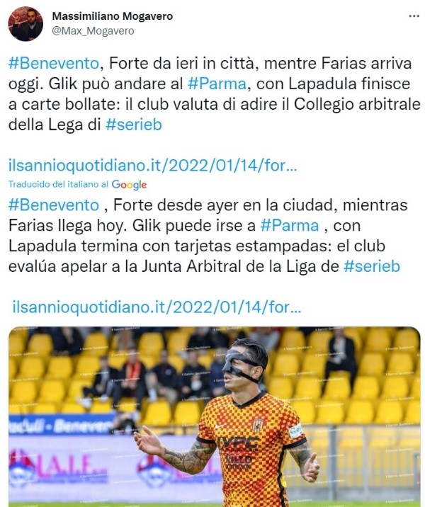 El periodista italiano Massimiliano Mogavero dijo, en su cuenta de Twitter, lo que podría suceder con Gianluca Lapadula: “Con Lapadula termina con tarjetas estampadas: el club evalúa apelar a la Junta Arbitral de la Liga de la Serie B”. Cabe resaltar que la relación entre el ‘Bambino’ y su actual técnico no ha sido muy buena en los últimos días.