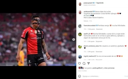 “Éxitos”, “Te rompiste la madre como un grande”, “Mis respetos, un auténtico gladiador”, “Ídolo, nunca hay que bajar los brazos”, “Grande Muralla”, estos fueron algunos de los muchos comentarios que recibió Anderson Santamaría después de realizar su publicación en sus redes sociales. Sin duda alguna los hinchas del Atlas se han convertido en un apoyo incondicional para el defensor que viene rompiéndola en la Liga MX.