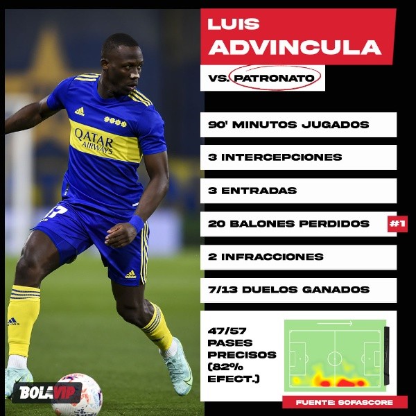 Los números de Advíncula en Boca-Patronato por la Copa Argentina