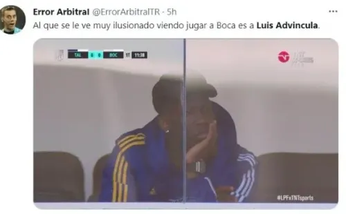 La cuenta de Twitter ‘Error Arbitral’ subió una imagen del ‘Rayo’ observando muy atentamente el partido entre Boca Juniors contra Talleres de Córdoba y puso lo siguiente: “Al que se le ve muy ilusionado viendo jugar a Boca es a Luis Advíncula”, decía en la rede social. Tras esta foto los usuarios comenzaron a lanzar sus comentarios diciendo: “Ya se debe estar repreguntando si hizo bien Boca lo necesita, no sé si él necesita a Boca”. “Banca no creo no” y más reacciones de los hinchas.