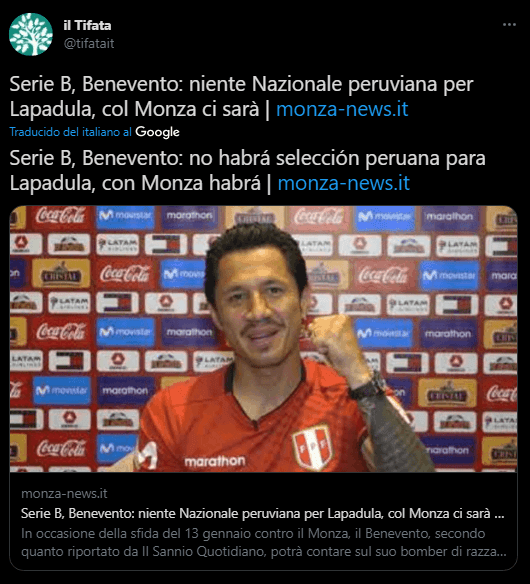 “El lujo de Giallorossi centra sus ojos y esfuerzos en lo que será en Sannio, centrando todo en un reinicio a mil horas para dejar aún su huella, en su campeonato y en el camino compartido con Benevento en Serie B”. Con esto podemos dar por descontado que Lapadula no estará en Perú, aunque él intentó hacerlo. Las fechas de competencia en la segunda de Italia. Le impedirán viajar a nuestro país. Ahora debemos esperarlo hasta ‘Las Eliminatorias’ todavía.